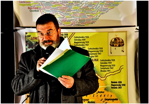 A rendezvény fő szónoka dr. Drábik János, a Trianon Társaság elnöke volt, aki ismertette a mai Ukrajna kialakulásának történelmi előzményeit, és drámaian éles szavakkal bírálta az immár egy éve folyó, és rengeteg emberáldozattal járó háború mögött rejlő nagyhatalmi játszma felbujtóit, szereplőit és gátlástalan haszonélvezőit.