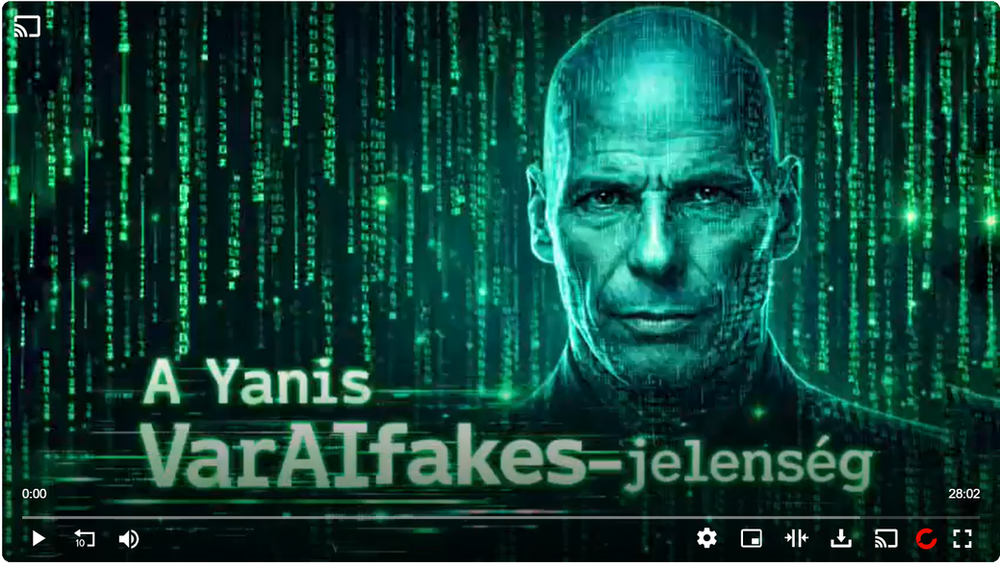 Yanis Varoufakis volt görög pénzügyminiszter arról beszél, hogy tömegesen terjednek a róla készült, mesterséges intelligenciával generált deepfake-videók a YouTube-on. Ezek a felvételek hitelesnek tűnő képpel és hanggal, az ő retorikai stílusát utánozva közölnek olyan elemzéseket és állításokat, amelyeket részben akár mondhatott volna – de gyakran olyan mondatokkal egészülnek ki, amelyeket soha nem mondana, és amelyek politikailag vagy erkölcsi értelemben is kompromittálóak számára .
